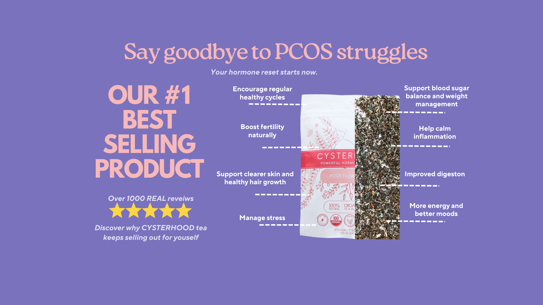 Our best selling Cysterhood tea has been created to help with the many frustrating symptoms of hormonal imbalances and fertility issues.